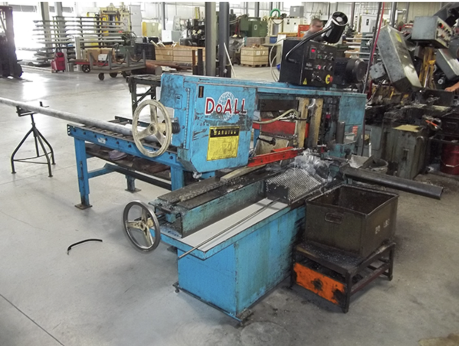 Cutting robots are programmed to remove material from a workpiece or to divide a workpiece into several smaller parts. B&B Manufacturing has three such automatic saws to cut rounded bars of metal into slugs to be machined into finished parts.