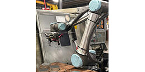 Robot handlers load and unload machines with custom-designed fingers/grippers and can be programmed to perform a variety of manual processes such as opening and closing doors, positioning and placing labels, and starting other machines. Universal robots excel in high volume repetitive tasks to ensure that quality is maintained while “lead time” is shortened. Operators reload the trays for the robot and periodically examine the machined parts after a set amount of product has been inspected. The robot contains sensors that make the system automatically stop if something is detected in its path, so workers can safely work alongside the new state-of-the-art technology. B&B Manufacturing uses a UR-10 robot for a variety of repetitive tasks.